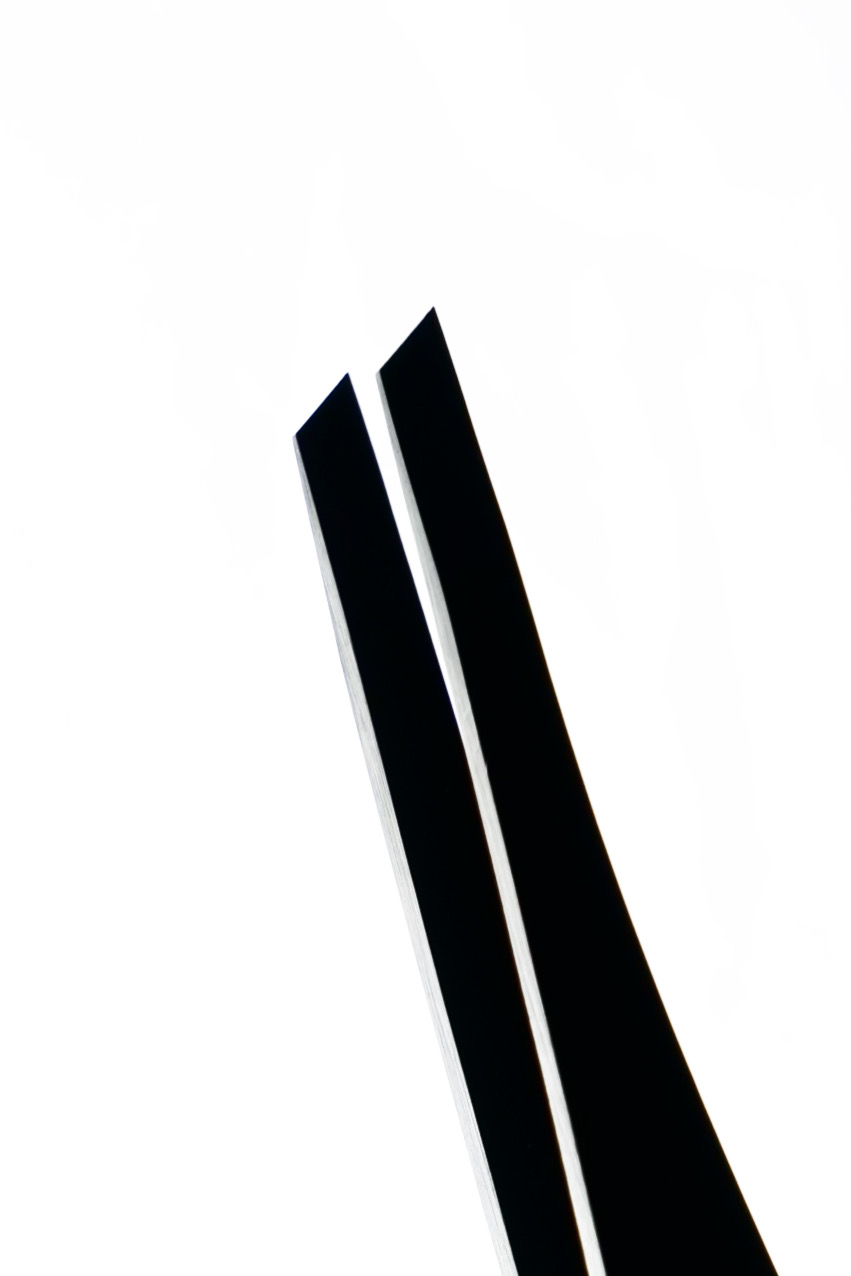 přesné uchopení i těch nejkratších a nejjemnějších chloupků bez jejich lámání díky ručnímu broušení a leštěným šikmým hranám pod úhlem 45°;