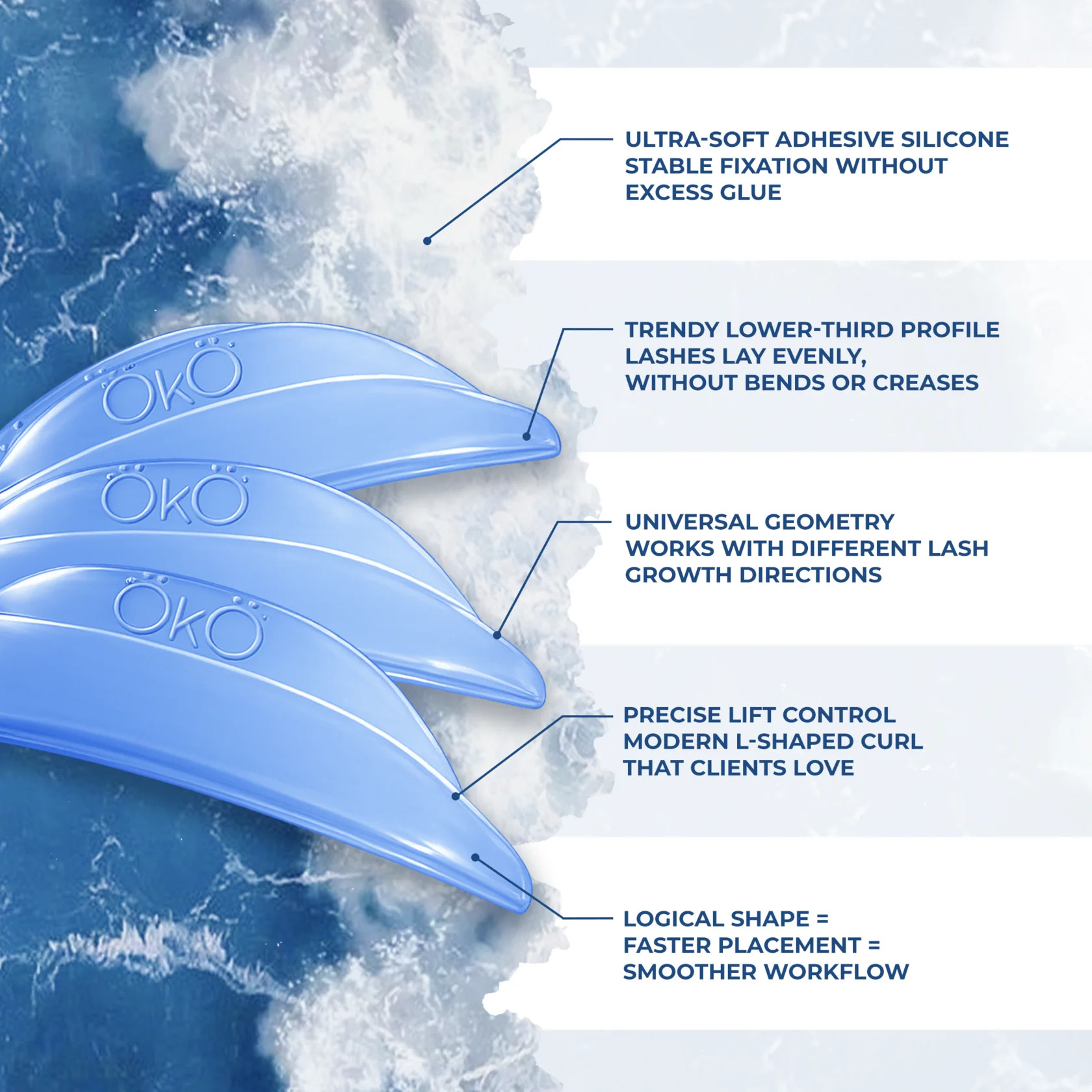 Velikost L: Pro dlouhé řasy. Ideální pro klientky, které nechtějí "panenkový" efektVelikost XL: Pro velmi dlouhé nebo chaoticky rostoucí řasyKontrola délkyZvednutí bez ohýbání nebo nadměrného zakroucení konců
